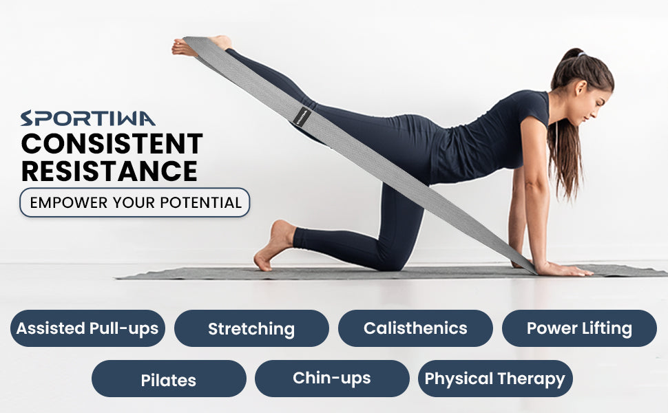 The Sportiwa band offers medium resistance (approx. 15–35 lbs)—perfect for strength training, yoga, and stretching.